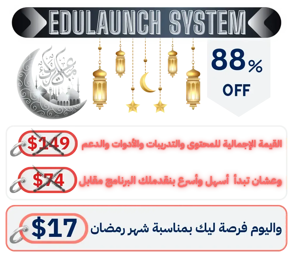 EduLaunch System هو (5 مراحل تنفيذ بمهمّات وخطوات واضحة) عشان كل مرحلة تخلّص فيها جزء أساسي لإطلاق بزنس كورسات أونلاين خاص بيك.